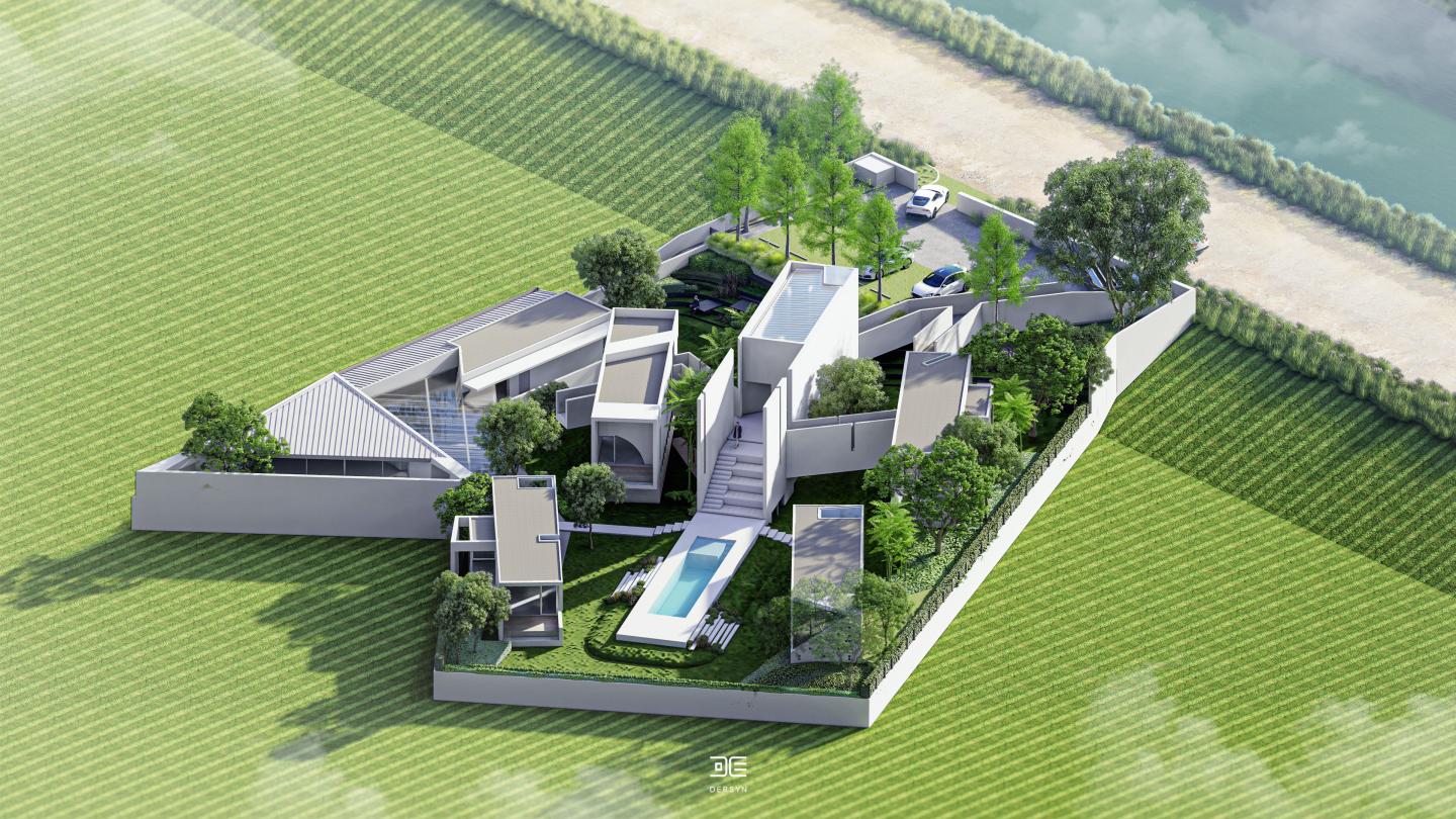 "MITI TIKAAN VILLA" epitomizes a harmonious blend of modernity and nature, nestled in the serene landscape of Kanchanaburi, Thailand. Our design intentions revolve around two key principles: modern minimalist aesthetics and a profound respect for the natural environment.