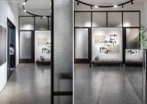 The dapper, dark lift lobby gives way to the gallery-esque reception, bearing a modernist yet timeless purity. The room’s almost sacrosanct demeanour is encountered as one walks through the black metal door frames infilled with frosted, wired glass, a forgotten leitmotif of design through the 80s and 90s.