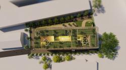 Its innovative design features facade cladding using brick throughout the structure, ensuring durability and aesthetic appeal. The entire mass is enveloped in an aluminum pipe framework, enabling the realization of a parametric form and shape. This strategic integration of materials and design not only enhances the building's sustainability but also exemplifies a commitment to environmental consciousness and architectural innovation.