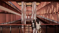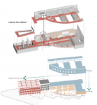 The project is configured from three articulated volumes. The first, - the core - the monumental space, which functions as an urban finish, where a slow circulation operates, the space simultaneously functions as a large open space of community character and connector in the verticality of the project. The 'finishing' in turn operates inside, in which it dispenses the route to a linear circulation axis that distributes to the previously mentioned strip systems.