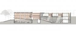 As far as this is concerned, the seclusion that the curve establishes in the project, and added to the topography of the eastern hills of Bogotá, the terrain is sculpted to form a public stand that is depressed and that consequently reiterates in the relations spaces that are offered to the user through triple, double and single height spaces.