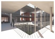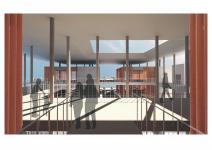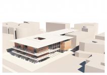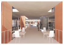 The volumes are surrounded by terracotta louvers that allow for the control of visuals and light. In addition, openings within the volumes act as a camera shutter that allows you different viewpoints as you go through the upper levels. As a result, as you travel through the upper levels, you maintain a connection with the market.