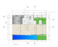 The roof gardens help ventilating and oxigen renovation,the wood used for the decks and for the steps of metallic framed staircases comes from reforestation.The waste waters and the sewage will be sanitized,so that waste waters may be reused.