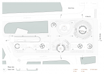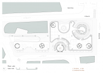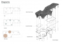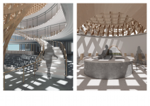 The circular columns, varying in size, form the structural framework. Smaller ones provide foundational support in a grid pattern, while medium-sized columns facilitate vertical circulation and services. The largest columns house cafes and fine dining spaces, emphasizing the importance of communal areas. These larger columns are recessed on the ground floor, providing seating around the circular staircase, and a direct entrance from the underground parking.