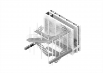 The main object of the project, which is the wall, is solid concrete, internally reinforced, and functions as a structural screen. The wall is composed of 3 consecutive screens cast simultaneously with shorter perpendicular sections to them. In this way, the necessary voids inside the wall are created for the development of its internal dynamics.