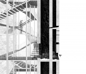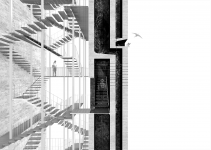 The structural screens, while supporting the structure, allow the metal elements to have thin sections. This way is possible to place a vertical element that fades away and blends into the landscape, instead of being disruptive upon it. The higher levels are covered with fog-catching meshes. These are anchored between the columns supporting the inner circulation. Circulations are divided and different conditions are generated between them. Meanwhile, the wall takes advantage of the low temperatures surrounding it at this height and houses containers inside to shelter and preserve seeds. In the event of an eruption, seeds of fauna and crops have been safeguarded and can be replanted when the soil is renewed. At the lower level, where the museum extends, the wall is buried and its section increases. It reveals all the material found underground, which tells the history of the place, intended to be remembered and learn from it.