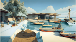 A new fish market and a restaurant are the scope of the brief. Partial redevelopment of adjacent public spaces is also required, along with constructing a plaza on the gulf that can become a recreational destination for city residents. The project aims not only at the functional revaluation of the area but also at better integration with the rest of the local community, the social microcosm composed of foreign immigrant workers who live and work in the village.