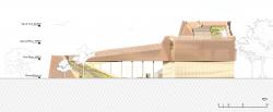 blue/green roof hybrid system was the obvious choice as they can work seamlessly together to both retain and distribute grey water to the building, as well as materially blending in to the surroundings. According to the 525 square metre surface area of the blue/green roof, annually it will accumulate a maximum of 673,050 litres of water (this can easily be reduced using the runoff strategy). The green part of the roof is implemented to blend and merge the architecture into the landscape, both tectonically, and materially. Furthermore, it acts as a filter for the precipitation that is to be used in the grey-water system for the building. Accounting for the fact that the soil will