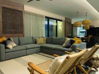 The house is prepared to receive 14 guests. Three bedrooms were distributed on the first level, each with its own balcony, two with full bathrooms and the other one with full bathroom and dressing room. On the second level the master bedroom is located enjoying a full bathroom, dressing room and a perimetral balcony.