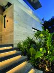 he main access is pedestrian only and leads towards the foyer that directs to the social area, the core of the house on the first level, creating a complete integration of the exterior terrace and the pool with the intention to benefit from the extent and functionality that gives having a whole space. The generous living and dining room —connected with the kitchen— communicate through the back part linking the very well-equipped exteriors with the comforts of the interior areas.