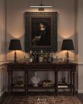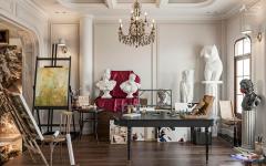 The art paintings are hung solemnly on the wall, not only beautifying the space but also suggesting ideas about works of art. Neoclassical decorative details such as gilded wooden frames, delicate vases and small bookshelves create an inspiring and attractive space.