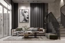 Located in Tan Binh district, the "Townhouse" project wears a modern, contemporary "coat" with neutral tones from light gray to warm beige, creating a living space that is both luxurious and comfortable. The main highlight of the design is that the house is equipped with a large glass door system that helps the spaces in the house to always be filled with natural light. This not only brings a spacious, airy feeling but also creates a seamless connection with the outside nature, helping the homeowner feel relaxed and comfortable every time they set foot in their home.