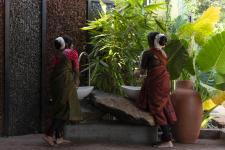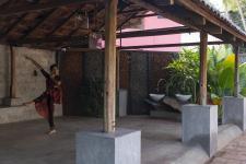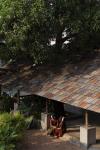 We additionally added an external structure of outdoor dining space under a mango tree, which exhibits an exquisite integration of nature and architecture. A Unique corner, as "Vayanashala" is provided by reuse of old ladders, transforming them into unique and functional bookshelves that breathe new life, making it a truly unique and inviting space for readers to explore. Traditional antique pieces reused as decor items in the interiors to find rebirth in the creation of innovative designs. The choice of earthy color palettes, rugged beauty of cement oxide, the warmth of wood, the earthiness of laterite, and the character of reused old roof tiles create a unique and inviting atmosphere, where guests can enjoy memorable meals in a charming, sustainable, and visually captivating environment.