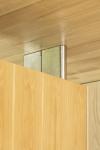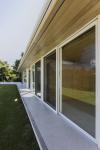 To divide the interior spaces, walls were avoided. Instead, furniture acts as a temporary boundary for the surfaces, creating maximum flexibility that adapts over time and according to the users’ needs. The courtyard serves as a link between the public and private areas of the house. There is no single main entrance; instead, multiple access points are connected by a semi-covered gallery. At each of these points, the clear views extend to a backdrop of oak wood, emphasizing the only boundary toward the neighboring property line.