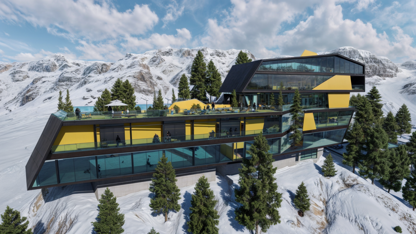 The building is meticulously designed to blend harmoniously with its natural surroundings, taking inspiration from the rugged rock formations of the surrounding mountains. The architectural form and material selection aim to establish a seamless connection between the built environment and the landscape, ensuring that the structure does not disrupt the visual and ecological balance of the site.