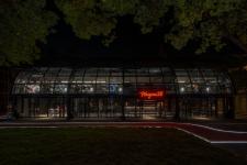 The vertical lift platform embedded in the curtain wall system, known as the "Motorcycle Catwalk," is the most striking visual focal point of Hangar 35, seamlessly blending functionality with artistry. As the platform rises, motorcycles transform from interactive exhibits on the ground floor to storage and art displays on the second floor, providing visitors with a unique immersive experience.