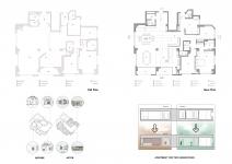 Column and Level Split: The two main architectural elements that could not be altered were the columns between the halls and the level split due to the presence of ducts running through them. These structural features were incorporated into the revised design.