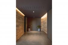 We approached the main entrance with the same outlook. We paired the stairs, roof and the edges as if they were excavated from inside a white shell. The inside of this area is also gray, but in combination with bricks. The brick that Mehrad's father loved very much, which exuberated the same feeling of the past that he pursued, a hand brick, rough and with the traditional arrangement. We also included the fireplace in the same complex with a small bench next to the flame and the plants lined up.