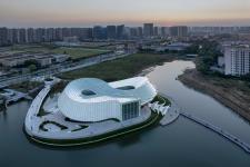 The museum's undulating roof design changes appearance depending on different angles, creating a timeless city symbol for Hangzhou.