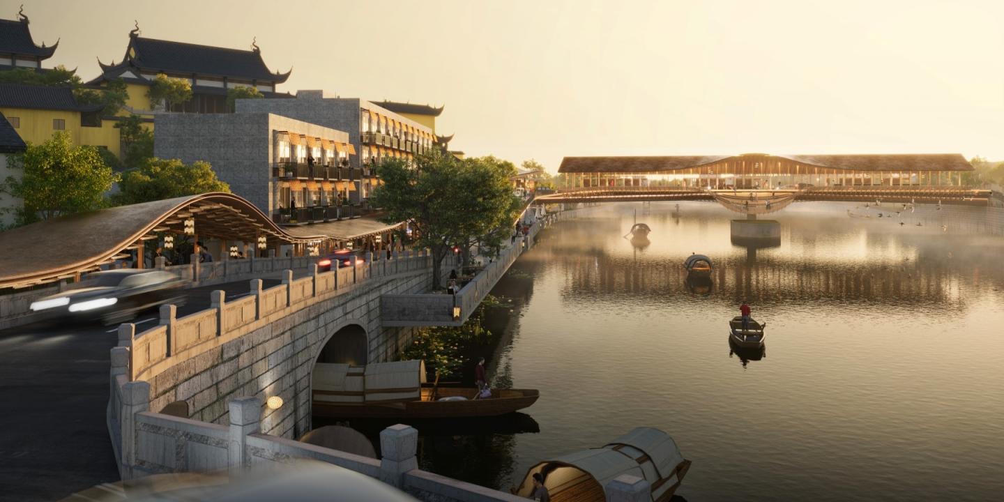 "One Axis" refers to the main water street of the ancient town, where the original ecological scene is preserved. It offers both an immersive experience of the old street’s traditional charm and the scenic waterfront views. This axis provides tourists with a fully immersive experience and connects the three main gateways through a series of alleyways, creating a complete and cohesive tour route.