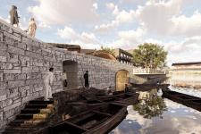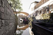 The tradition of traveling by rowboat remains deeply ingrained in this century-old waterside town. The design plans to add a ferry dock, providing convenient access and waterway viewing services. The small plaza at the southern end is currently used for parking and drying, and it connects to the stairs leading to the bridge and the passage beneath it.