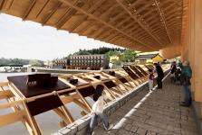 The corridor structure uses modern timber construction, with a meticulously crafted design that aims to replicate the complexity and beauty of traditional Chinese architecture, creating a unified, continuous, and intricately woven facade.