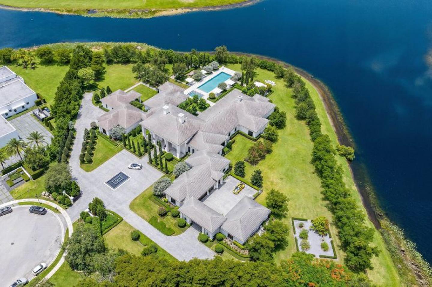Fully automated smart home, boutique-style primary suite, club room with a 150-inch screen, nine air-conditioned garage bays, lakefront views, resort-style landscaping.