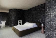 The materiality reinforces this connection with the landscape. The winding wall, covered in black stones, contrasts with the white stoned floor. The house is both a shelter and a living experience. A single material, the stones, defines its essence. Seriema House is time, river, mountain, cave. It is, above all, poetry.