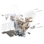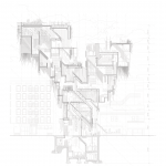 The decision to employ a column and beam grid system as the primary structural strategy reinforces the thematic notion of “pockets.” This grid system not only supports the physical weight of the structure but also serves as a framework within which the fragmented spaces can nestle. By combining the stability of the grid with the fluidity of the fragmented spaces, the design achieves a balance between order and organic form. The columns act as anchors for the suspended layers, while the beams provide the necessary horizontal stability, creating a cohesive yet dynamic structural system.