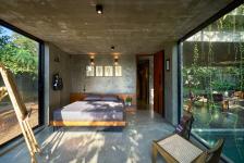 • Play of Heights and Levels: The design deliberately uses varied ceiling heights and floor levels to create a more intimate, human scale. This approach opens up the interior, allowing for a clutter-free environment where every room feels expansive and clear.