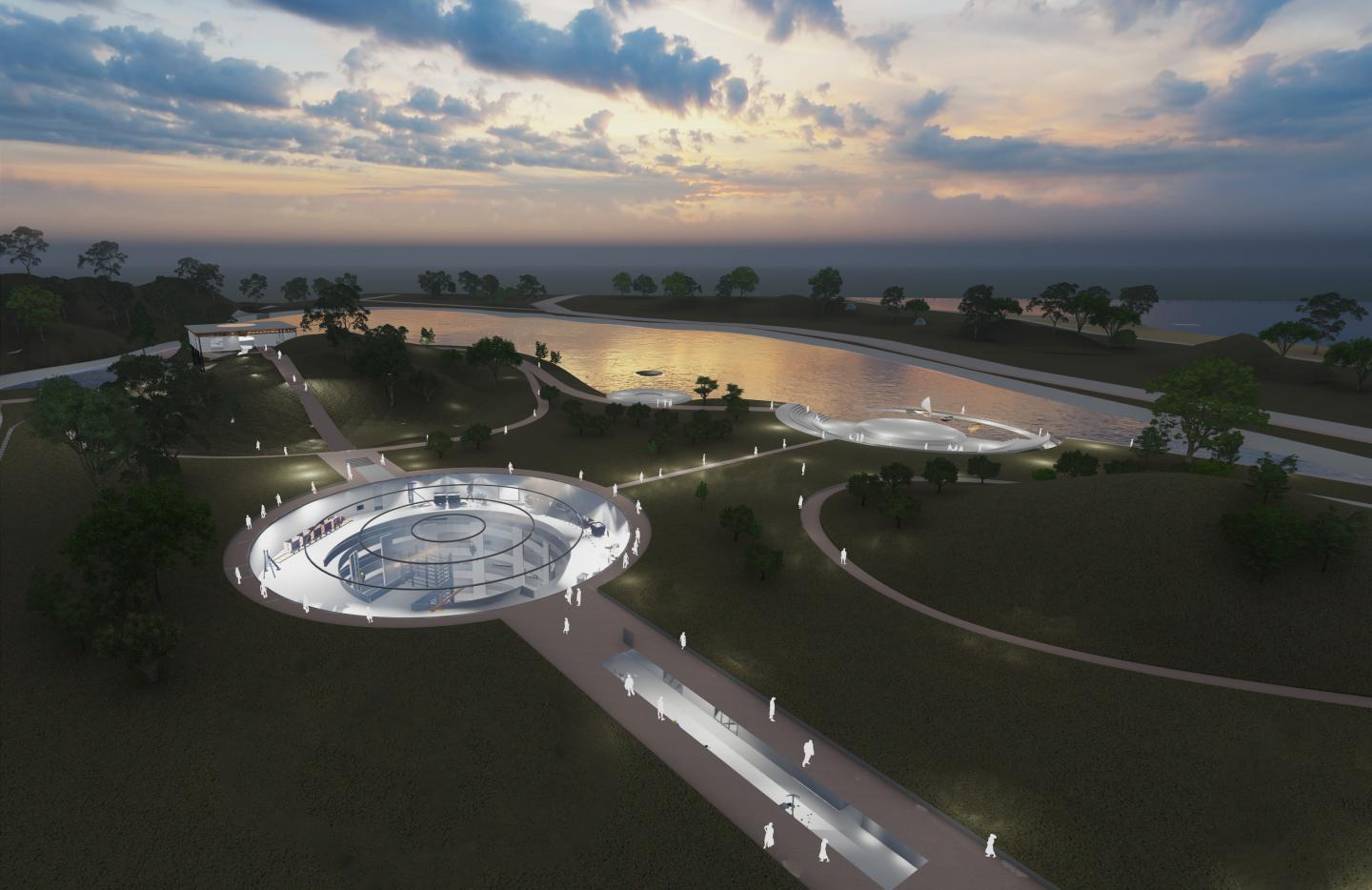The Experience Centre is strategically positioned at the core of the plan, seamlessly blending into the natural landscape. The Chora, a significant watercourse, is preserved in its original flow, subtly shaping the architecture as it traverses through the center. This integration ensures a dynamic and organic form, maintaining harmony between the built environment and nature.