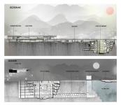 The project aims to retain the true geological narrative of the site within the form of an experience center and focus on the rejuvenation and regeneration of these abandoned lands to restore the lost balance with nature and its surrounding context. The lake, created from an abandoned limestone quarry, has become a significant tourism destination known for its clear blue waters and scenic surroundings.The concept of open-pit mining inspires the design and the methodical removal of earth involves integrating the essence of mining techniques into the architectural and spatial design. The experience center can feature a terraced layout by mimicking the stepped nature of open-pit mines. Through thoughtful conservation strategies, the Takerghat quarry can serve as a powerful reminder of the region’s history while contributing to its future as a vibrant tourism destination.