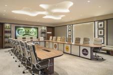 The head office of Carlsberg India Pvt Ltd in Gurugram is a testament to the successful blend of functionality, aesthetics, and brand integration. The design reflects Carlsberg's legacy while embracing contemporary design principles and sustainability. Through innovative spatial planning, multifunctional spaces, and thoughtful design choices, the office provides employees with an inspiring environment that promotes collaboration and productivity. This project exemplifies how corporate spaces can be visually stunning and functional at the same time.