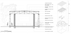 In response to material scarcity challenges, this design innovatively employs diverse materials for similar architectural elements. Embracing clear geometric forms, the structure harmoniously integrates various materials, optimizing resources. Reinforced with steel beams, cement brick columns withstand horizontal loads, while others, crafted from single wood trunk pieces, repurpose surplus materials. Self-supporting walls blend cement brick masonry with wild bamboo, elegantly marrying strength and sustainability. Foundations, rooted in local sand and cement, fortified with strategic steel reinforcements, ensure stability and resilience.