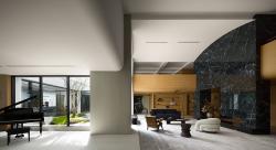 A central courtyard garden vertically traverses the space from the first floor to the negative second floor, horizontally connecting functional spaces such as the living room, tea room, bar area, and art hall. The spaces are interconnected, creating a balanced and flexible arrangement. The stillness of the landscape complements the dynamism of the space, blending architecture and nature, extending into a novel experience that integrates Eastern, natural, and minimalist elements. This design exudes both majestic tension and delicate tranquility, creating a rich sensory experience and a compelling emotional impact.