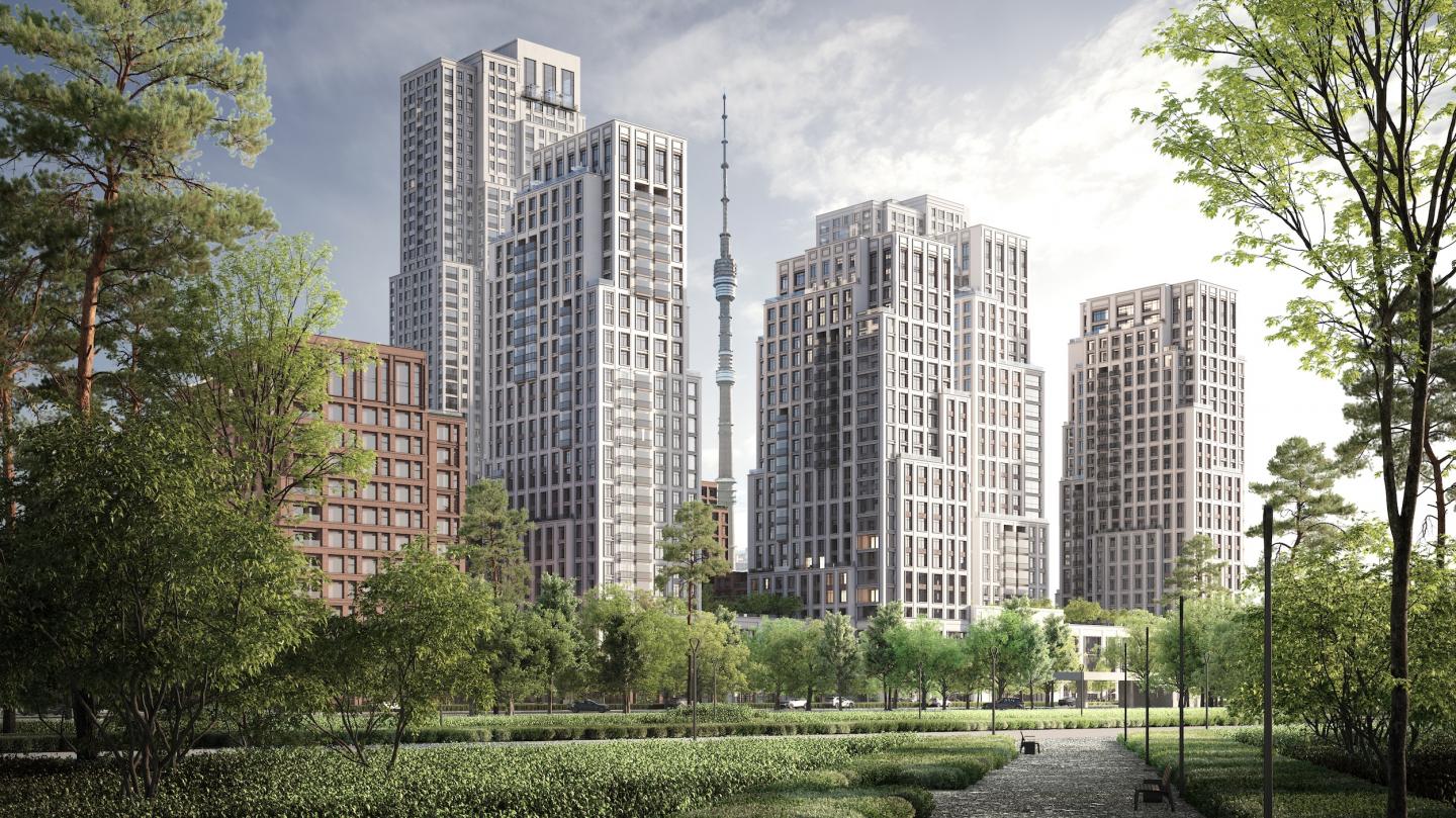 Inspired by the famed 1960 song Moscow Windows, the new Brusnika’s quarter is an acronym made of the initial letters of one of its lines: Moscow Windows Everlasting Light (MONS in Russian). The quarter comprises four towers linked by a podium and two towers with an adjacent U-shaped block, a business centre and an educational cluster framed by a network of civic spaces with squares, pocket parks and boulevards. At the masterplan stage, Brusnika’s architects were aiming at a city ensemble with elements of various scales, heights and functions to embrace accommodation, commerce and recreation. With two legendary Moscow landmarks in the neighbourhood, namely, the Ostankino Television Tower and the VDNKh Exhibition Centre, the team faced the challenge of integrating the new development into the established, historically charged cityscape. The solution crystallised in the architectural structure and massing to mirror spectacular views with glazing and summer premises. A public square with a range of pedestrian routes is at the core of the masterplan. The square visually expands the development vista, incorporating the Ostankino Tower into its area. The boulevard network permeates the quarter, linking it to other recreational zones.