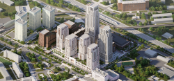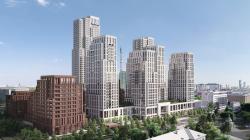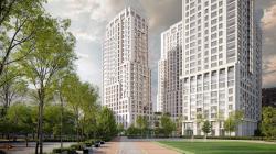 The project realisation implies two construction stages. The first comprises the four towers linked by the podium, an educational cluster, and street and pocket park landscaping. The second one encompasses two towers with U-blocks and a commercial pavilion.