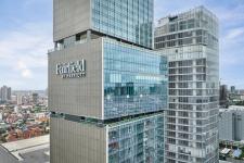 The design of the massing volume emphasises program stacking in response to the client's brief, which is then vertically broken into several volumes. Each volume reflects different programmes - hotel guest rooms, hotel facilities, office, podium parking, and retail. Each volume is tapered to create a stronger oblique profile. The transition levels between volumes are where the feature functions are allocated, such as a co-working space with landscaping, a pool deck, and sky bar at the top.