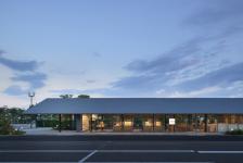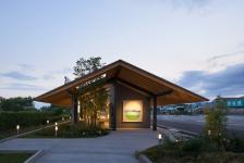 The first step was to create a light, elongated roof that echoes the large scale of its surroundings, blending in with the road and the greenery of Lake Biwa.
