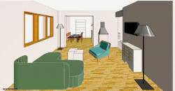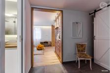 5. The kitchen and the bathroom were refurbished with the use of existing installations. All kitchen and bathroom appliances are energy efficient. The kitchen is designed from natural materials. In the bathroom was designed a closet from natural materials for the laundry washing and drying machine. The living room was designed to be a comfortable place with lamps, sofa, tv and a fireplace or a digital fireplace.