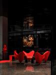 The bar area and the reception area have achieved unbounded linkage and share a similar design language. Bright red metal decorative panels, glass bricks and colored glass bottles combine to create a fashionable tone and subtle texture, and the cool materials blend into the mottled light and shadow of the interior.