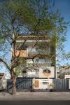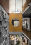 The project's plan is conceptualized as an inward-looking house, opening at the inner core with a triple-height courtyard. The ground floor is spatially designed to accommodate major public areas with a cut-out that itself shifts across the floors, providing green elements and a visual connection to all the spaces. The pre-existing tree in front of the site has been incorporated into special planning as a shading device and as a privacy screen. The panels used in the house are precast concrete, acting as a buffer wall from temperature modulation.