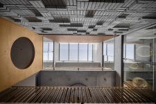 The upper two levels provide an increased level of privacy for all the family lounges with bedrooms designed solely for family members. The double-heighted balcony with its screens adds another dimension to the floor. The terrace level is kept as a complete recreational floor with amenities like jacuzzi, halls, open seating areas, and such. Stack effect is in full use through the triple height cutout at the center of the premises.