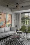 Throughout the house, concrete is the main element and material used, serving as both a canvas and the primary art as well. The artworks and sculptures used throughout the house were developed by multiple local artisans, accentuating the spatial experience. Even the furniture and lighting are carefully designed to complement the concrete's versatility, adding bold pigments to the material and textures on the surface.