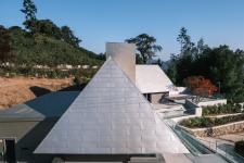 The new café, built atop the old barn, was intentionally designed to be small so as not to disrupt the memories of the land. This approach preserves the sense of place and maintains its connection with the old structures. As a result, the café has become a silent space that quietly holds many hidden stories. The contemplative atmosphere is heightened by the panoramic view of the natural landscape, dramatically unfolding from inside the café. The roof-centered café structure, reminiscent of traditional Korean pavilions, blurs the boundary between indoors and outdoors, enabling an infinite extension into nature and achieving harmony with it. From the outside, the roof appears to encompass the entirety of the building, but once inside, the structure seems to vanish, leaving only nature behind