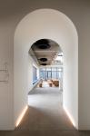 The narrow building on the seaside is applied with a curtain wall technique to maximize the visual openness. The back side higher than the front side is applied with a dome-shaped design to attract more attention and solve the structural problems of the seaside buildings vulnerable to typhoons and natural disasters.