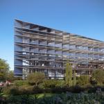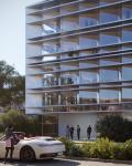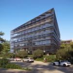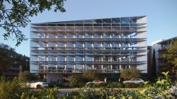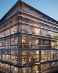 The building outline introduces a simple geometry, that of a trapeze, which expands over the whole site and addresses the prominent corner. Clean lines for the floor layouts perforated by a centrally positioned atrium running through all the floors.