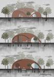 The Earth Home is a private house being built on a site of 2830 sq.m. In Gandhinagar, Gujarat, India. A series of load bearing arches sequentially create volumes of varying heights along the southern boundary of the site orienting all the inner volumes towards the north.