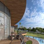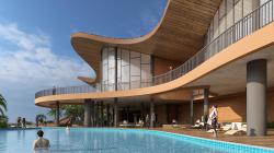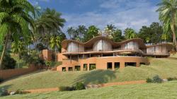 The entry level houses a restaurant, bar, few guest rooms and lobby lounge with sporting facilities including a large swimming pool at the lower level, followed by a Sky Bar at the lowest level framing the enchanting view the site offers. Each space opens into large curvilinear decks overlooking the Arabian Sea. The entire building is being built with a locally available terracotta coloured stone called laterite (also known as chira in the local language) which is sourced from the immediate vicinity. This also adds good thermal value to the internal spaces.