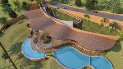 This recreational and sports facility building is located on a hill with steep contours overlooking the Arabian Sea in Dapoli, Maharashtra, India. Designed in 3 levels the building is entered at the topmost level which is the approach point and gradually steps down with 2 lower levels integrated with the existing contours ensuring that excavation and land filling are negligible.